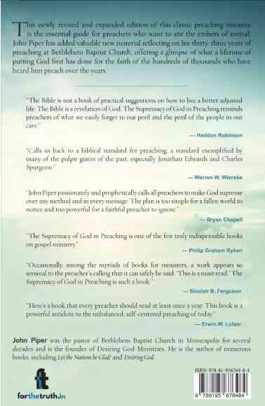 John Piper pleads for preachers to make the supremacy of God the bracing air of their sermons. He longs to see a new generation of preachers, and a revived band of seasoned brothers set aflame with the grandeur of God—his glory as the goal of preaching, his cross as the ground of preaching, his Spirit as the power of preaching.
